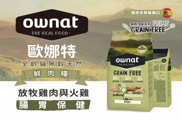 **搶鮮上市** ownat 歐娜特無穀天然鮮肉糧-全齡貓-放牧雞肉和火雞-腸胃保健