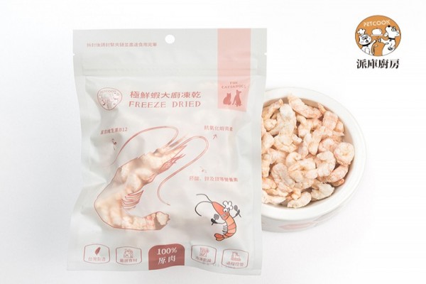 酥脆的蝦仁有如寵物界的蝦味仙般酥脆、美味,並且如我們其他款式凍乾一樣,100%純天然,無任何添加物喔!真的吃起來很鮮(派編很喜歡很ㄕㄨㄚˋ嘴