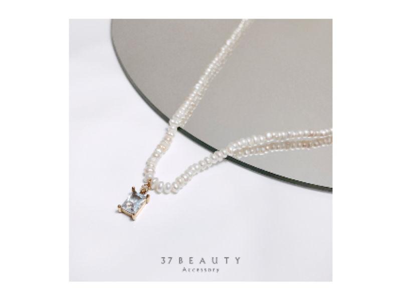 方鋯米粒珍珠項鍊
