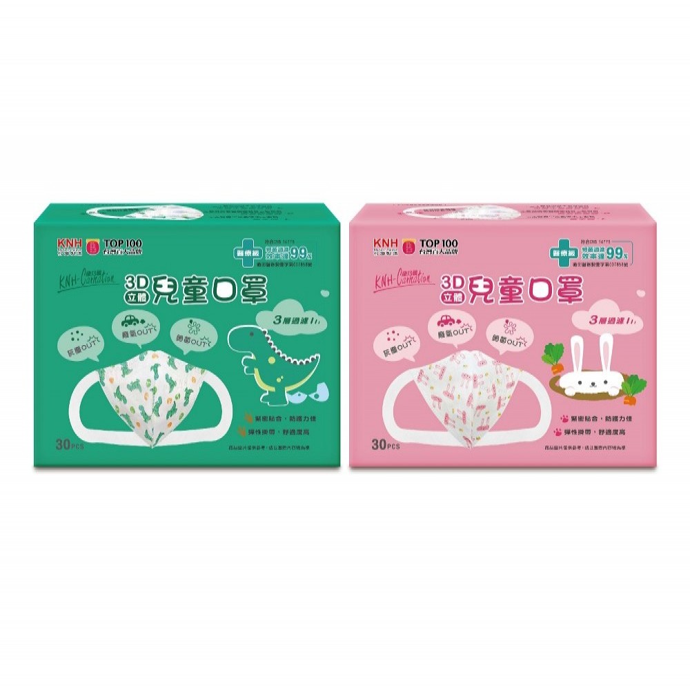 康乃馨醫療兒童立體口罩-恐龍&白兔(30片/盒)