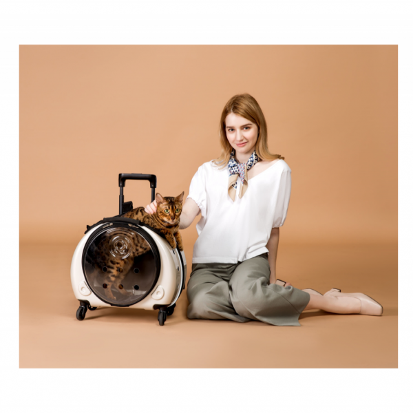 背包及推車兩用,車體有專利透氣孔,材質防熱,上方有網布可透視且透氣,前方有透明蓋, 可透視且可讓寵物自行進出, 推車體積輕巧,出門操作輕便,機車族的最愛!適用7公斤以下寵物。