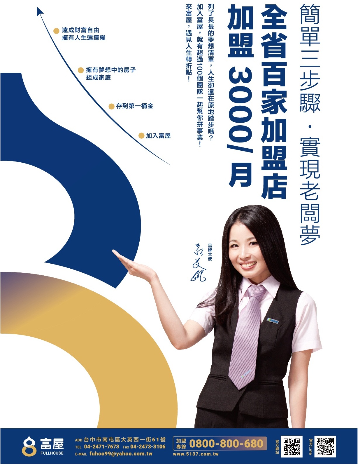 富屋企業有雙品牌、宣傳曝光、E化、專業客服、行銷平台、完善教育訓練等六大加盟優勢,互利共榮,輕鬆致富!
