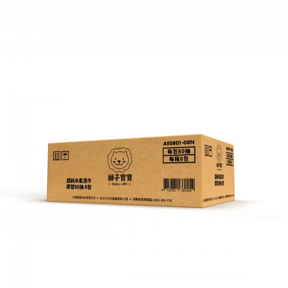 獅子寶寶 超純水柔濕巾厚型80抽 8包/箱