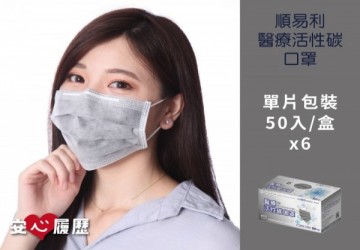 1.單片包裝,乾淨衛生 2.台灣製造,品質安心 品名:"順易利"醫療活性碳口罩 (未滅菌) 許可證核准字號:衛署醫器製壹字第00... 原價 : 2,400 現場價:NT$1,500 順易利醫療活性碳口罩 單片包裝 50入/盒x6
