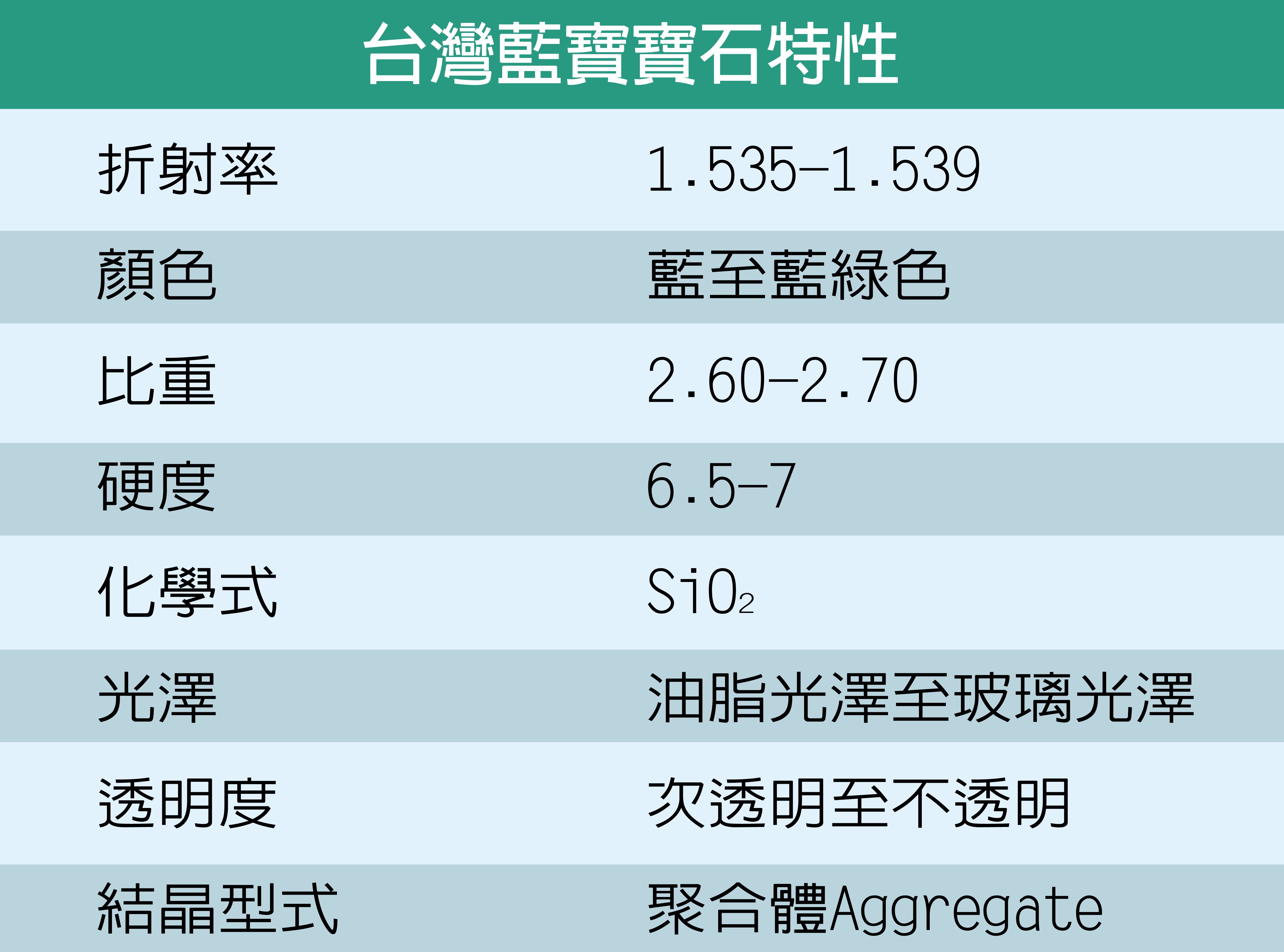 台灣藍寶是所有玉髓寶石當中價值最高的一種,品質最佳的台灣藍寶多半切割成蛋面與手鐲。