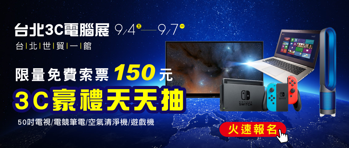 預約逛展加碼天天抽50吋電視/電競筆電/空氣清淨機/遊戲機,千萬不可錯過!